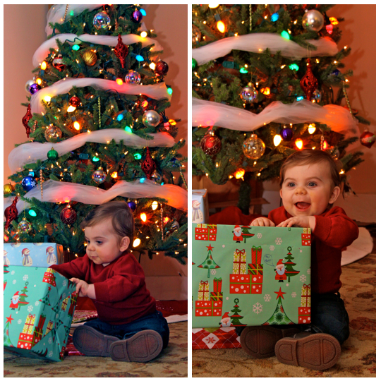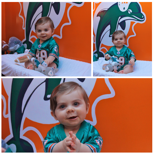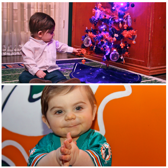 His mom and dad are huge football fans! I mean HUGE! His room is decorated in half Alabama Auburn and Half Miami Dolphins! Its is so cute! We took a picture with his Auburn christmas tree in his room!