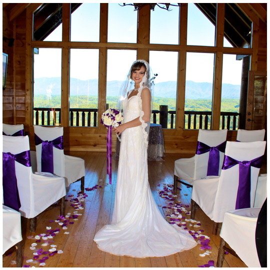 This was such a beautiful destination wedding for this couple. They got married at a beautiful cabin in the great smoky mountains in Pigeon Forge. The cabin was beautiful and they did a great job on decorating it. It looked just like a wedding chapel in there.