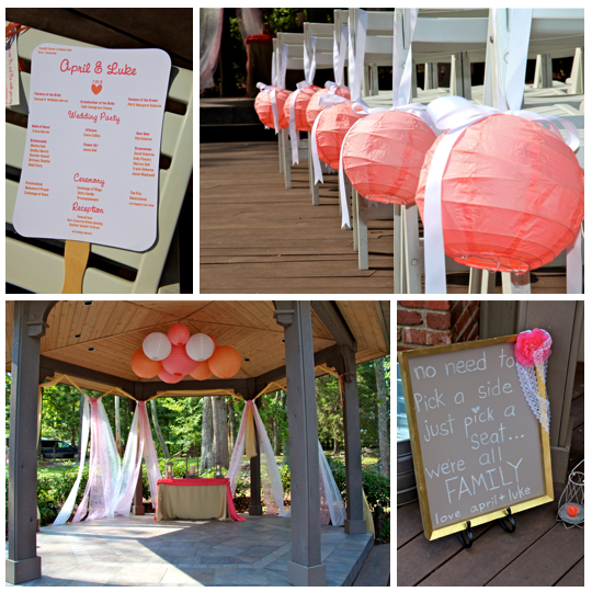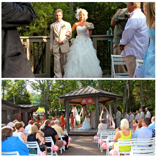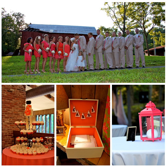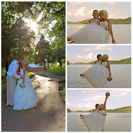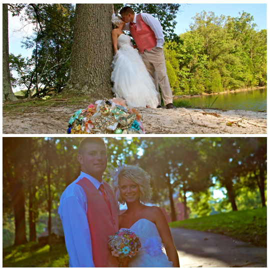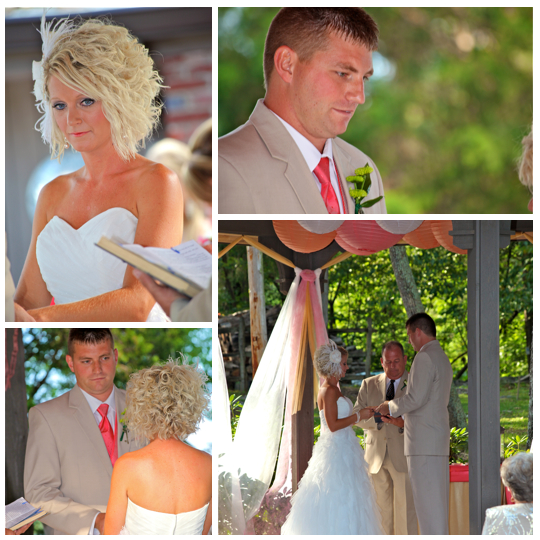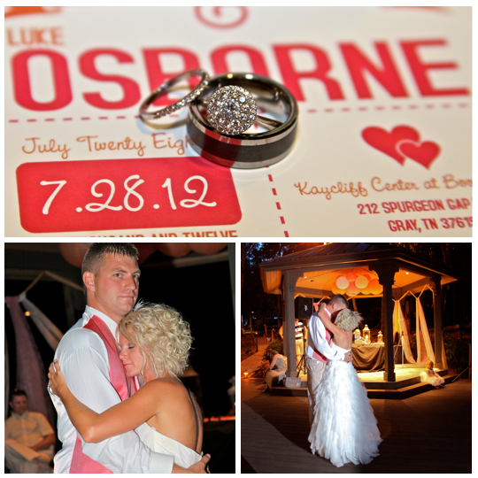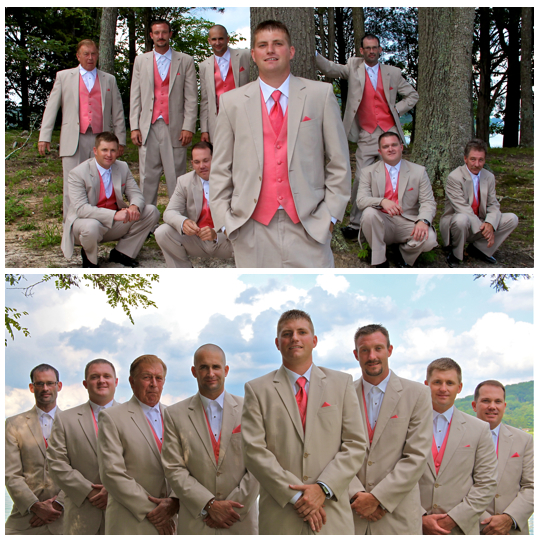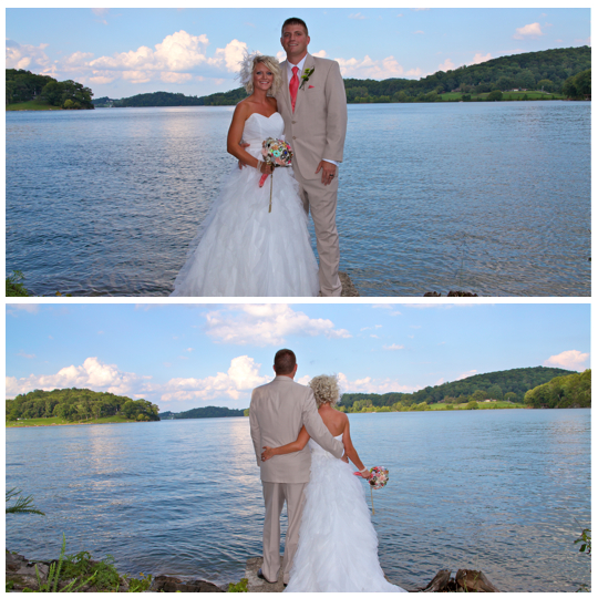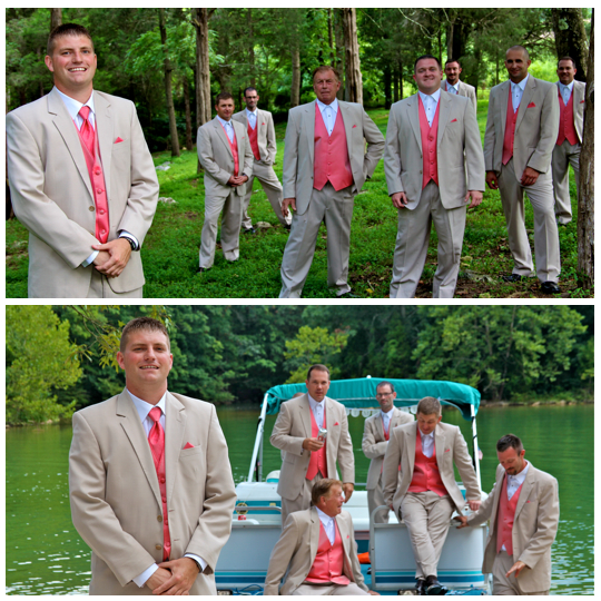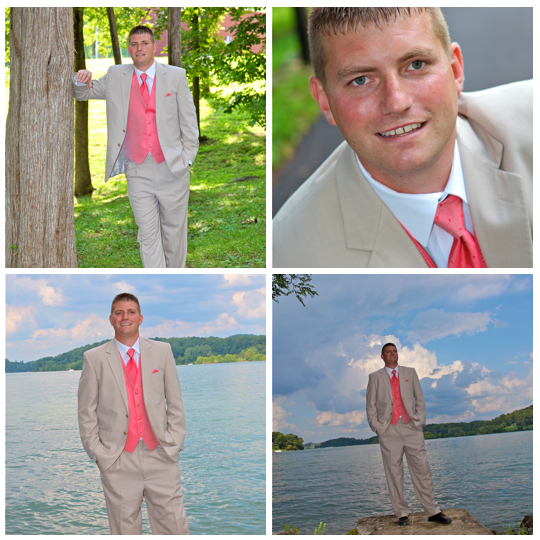 You might remember this couple from their beautiful engagement session we did back in April. This wedding was beautiful. It was a lake wedding at the Kaycliff Center at Boone Lake in Gray, TN. The wedding colors were my favorite! I loved all the coral she added. She did a great job with decorating with all the coral paper lanterns. I LOVED her broach bouquet! It was AMAZING!! The whole wedding went perfectly. The weather was amazing as well.